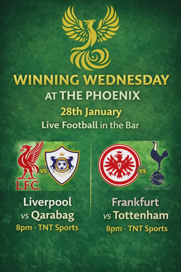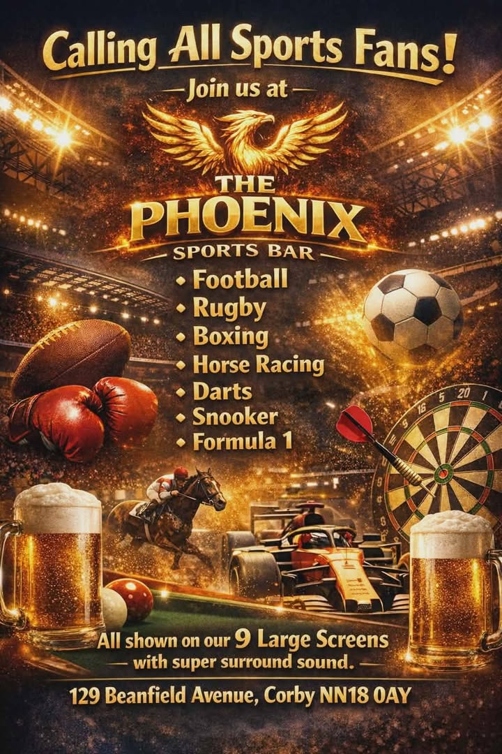 Weekend incoming ๐ปโฝ Big games on the screens, cold pints at the bar, and an atmosphere you wonโt get in your living room. Round up your mates, dodge the sofa, and join us for live sport all weekend. ๐ Phoenix, Corby โ honestly, the only place to be ๐ฅ๐ป๐บ