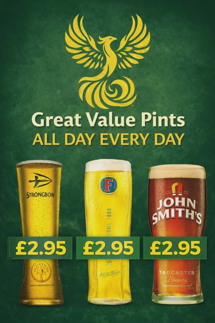 โWhen the pints are great and the prices are better ๐๐ป The Phoenixโ โTag your pint partner ๐บ๐ Great-value pints at The Phoenixโ All day, every day ๐