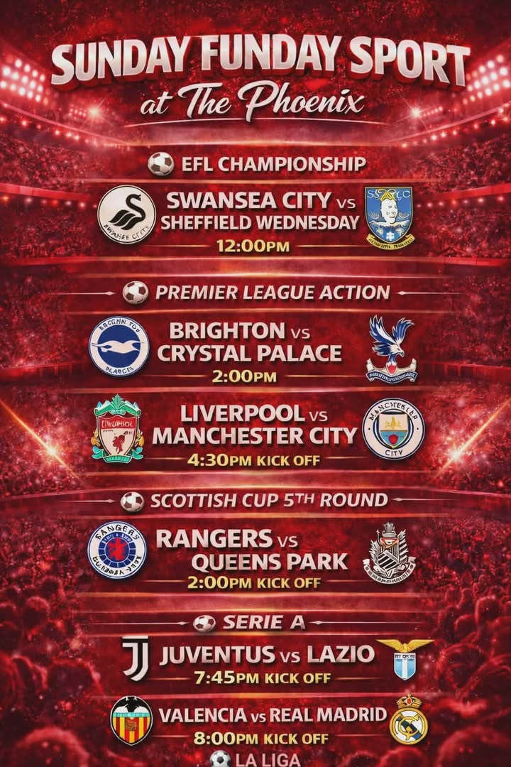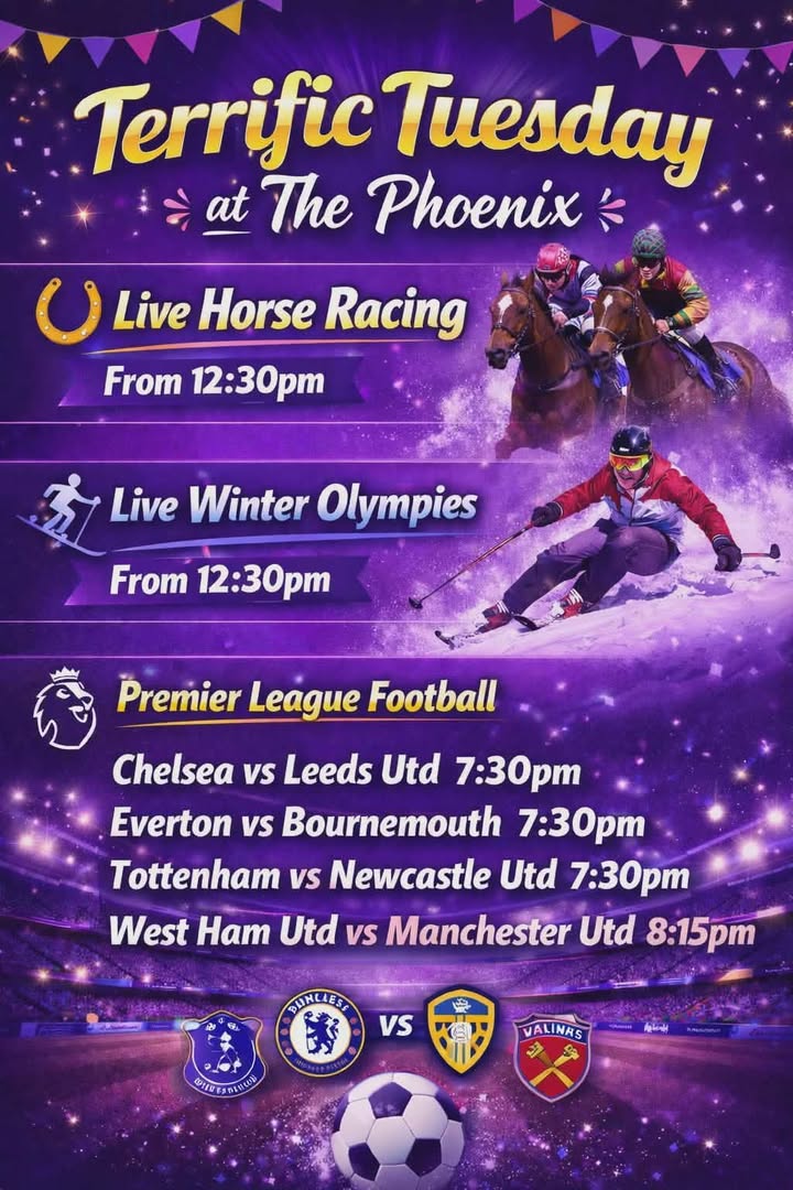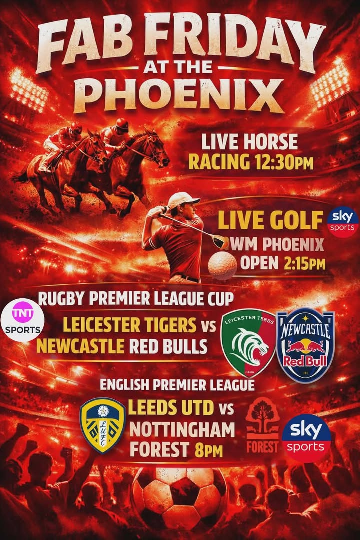 Here at the Phoenix, we're committed to making you smile! That's why we don't just settle at being a great place to watch live sport. We have regular live entertainment as well as throwing the best parties! Keep check on our Facebook page to see what we have coming up! Call to book your table today!