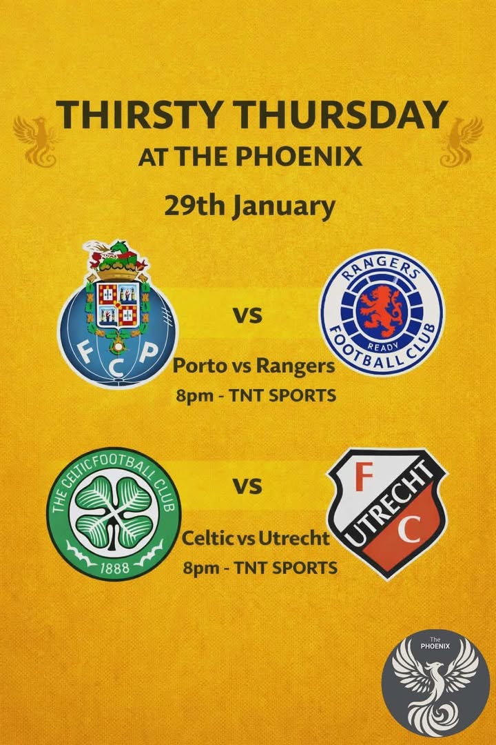 Match day, we're turning up the heat โฝ๐ป๐ฅ If youโre watching the Champions League anywhere other than The Phoenix, we need a wordโฆ ๐โฝ Live football, cracking drink promos, and an epic atmosphere ๐ Kick off 8pm, Pints pouring. Letโs have it ๐ป๐ฅ